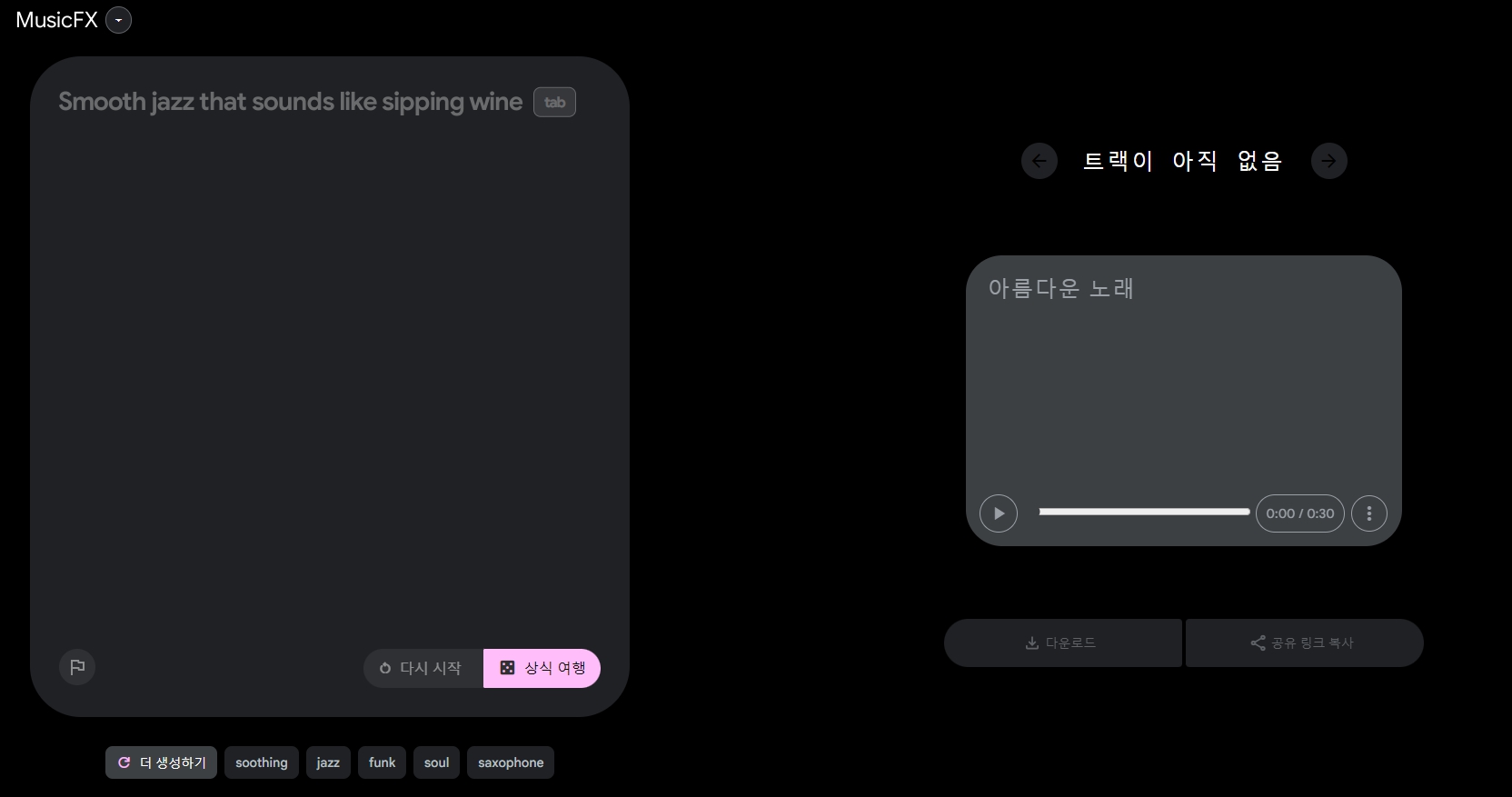 - ์ ํ๋ฒ: Flow + MusicFX๋ก ์ผ์ธ ์์ ์์ฑ